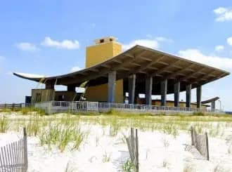 Located just .3 miles east of Perdido Pass Bridge, Alabama Point East offers more than 6,000 feet of wide beach, sand dunes, boardwalks, picnic areas, restrooms, and outdoor showers. Parking is free.